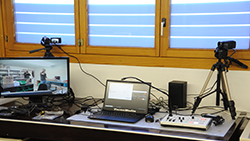 tecnica di video conferenza con mixer AV dedicato, due camere di ripresa mobili, integrazione in tecnica esistente
